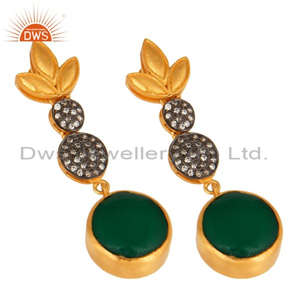 Handmade Green Onyx Gemstone Earrings Made In 18K Gold Over Brass