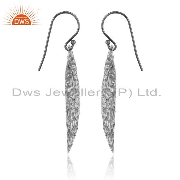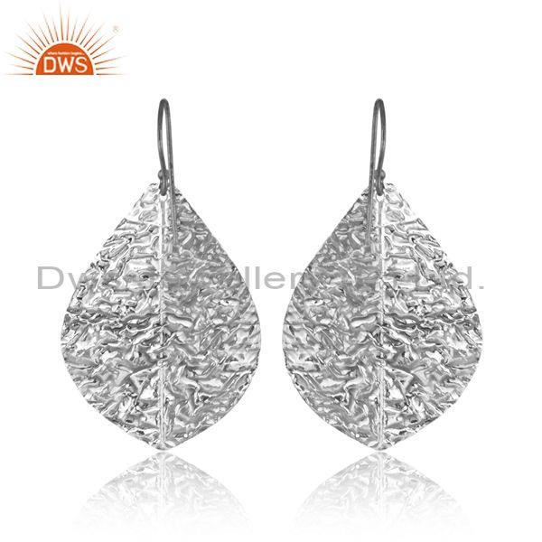 Handmade Oxidized 925 Sterling Silver Leaf Textured Earrings