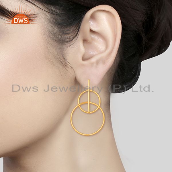 Handmade Plain 925 Silver Gold Plated Simple Earrings Supplier