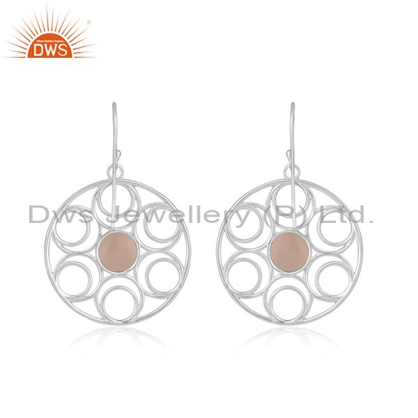 Handmade Rose Chalcedony Gemstone Fine Sterling 925Silver Earrings