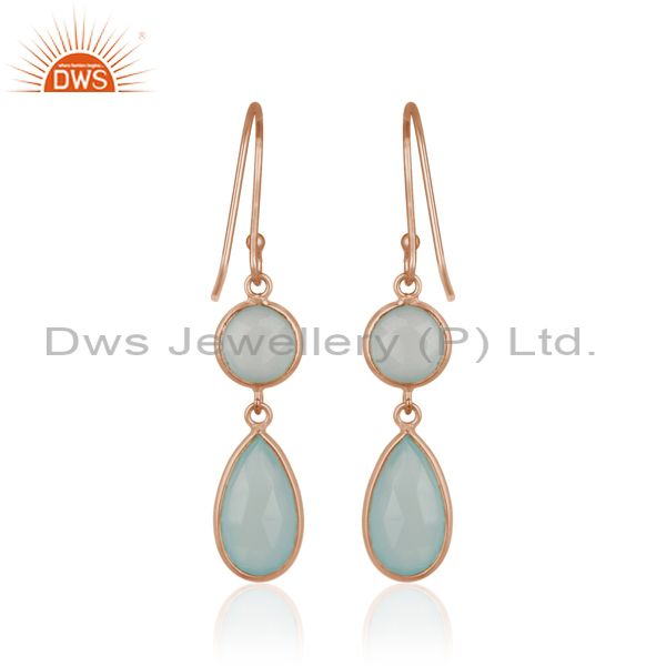 Handmade Rose Gold Plated 925 Silver Aqua Chalcedony Gemstone Earring Wholesale