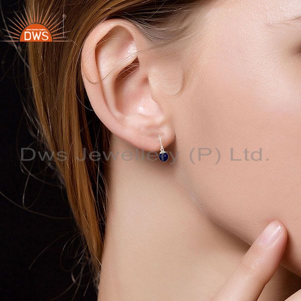Handmade Solid 925 Sterling Silver Lapis Dangle Hook Earrings For Womens