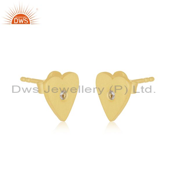 Heart Shape 925 Sterling Silver Gold Plated Cz Stud Earrings Manufacturer India