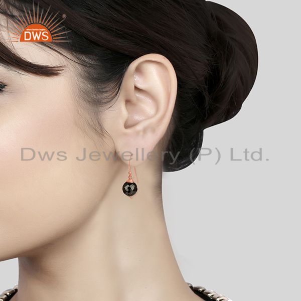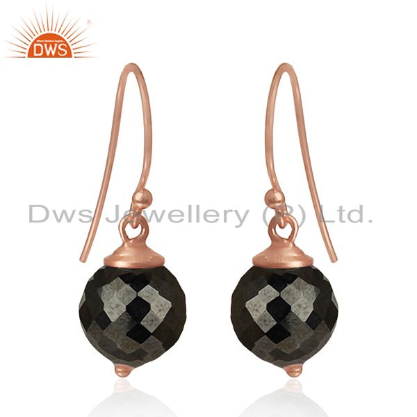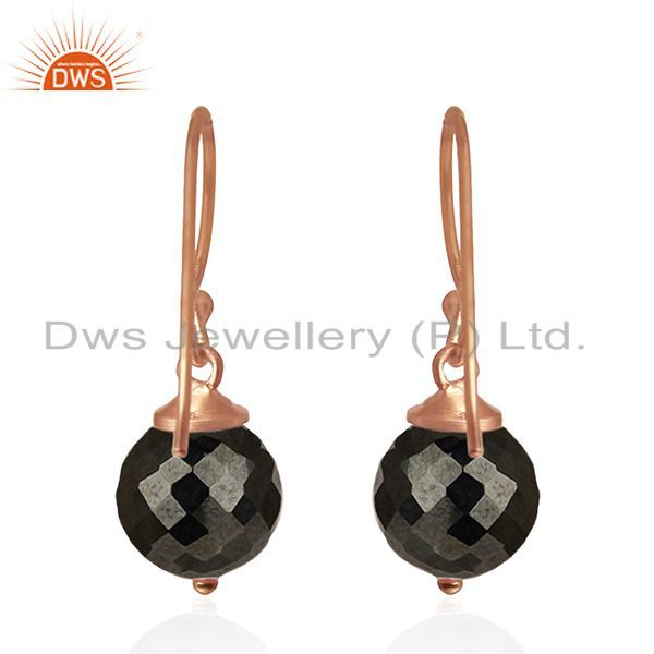 Hematite Gemstone Rose Gold Plated 925 Silver Drop Earrings Manufacturer India