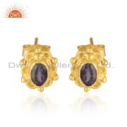 Iolite Gemstone Antique Oxidized 925 Silver Designer Earrings