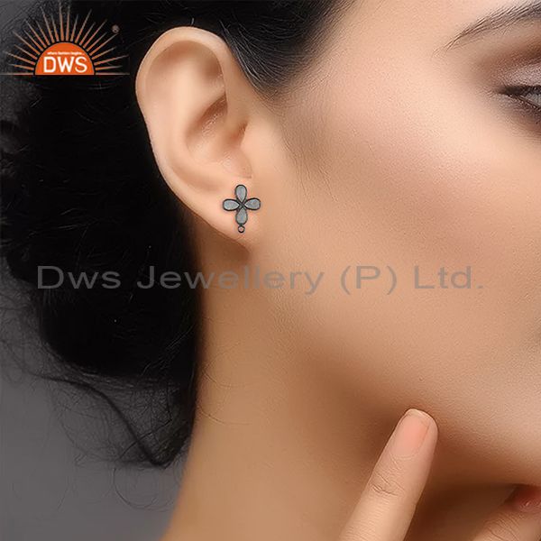Labradorite Gemstone Black Rhodium Plated Brass Earrings Jewelry