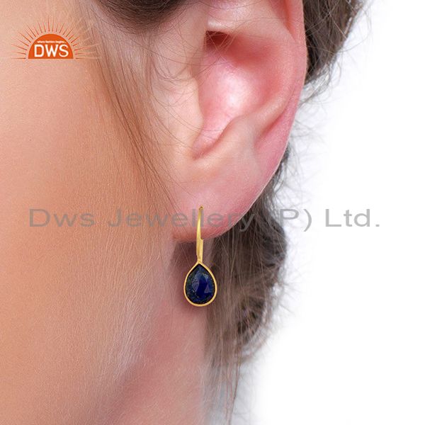 Lapis Lazuli Dangle 14K Yellow Gold Plated 925 Sterling Silver Earrings