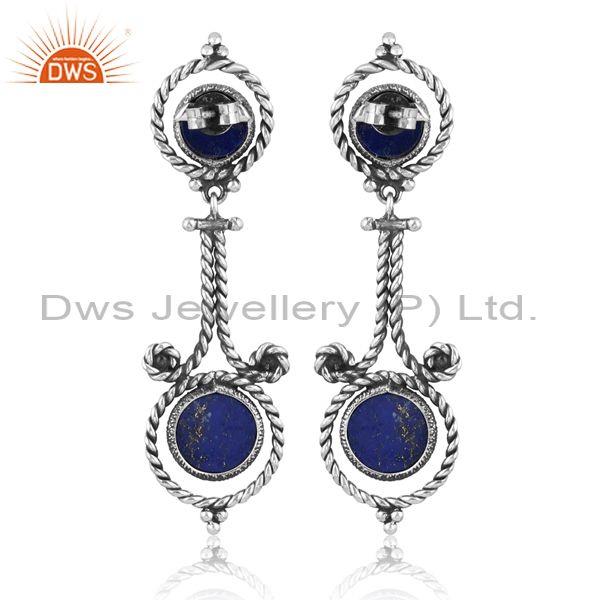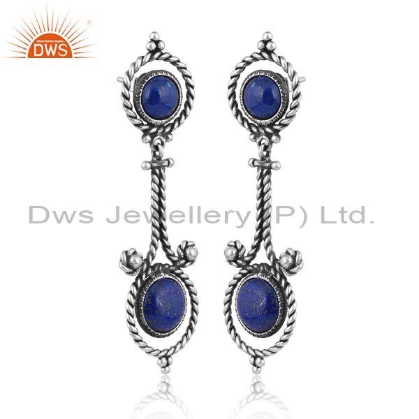 Lapis Set Oxidized Silver Handmade Ethnic Design Earrings