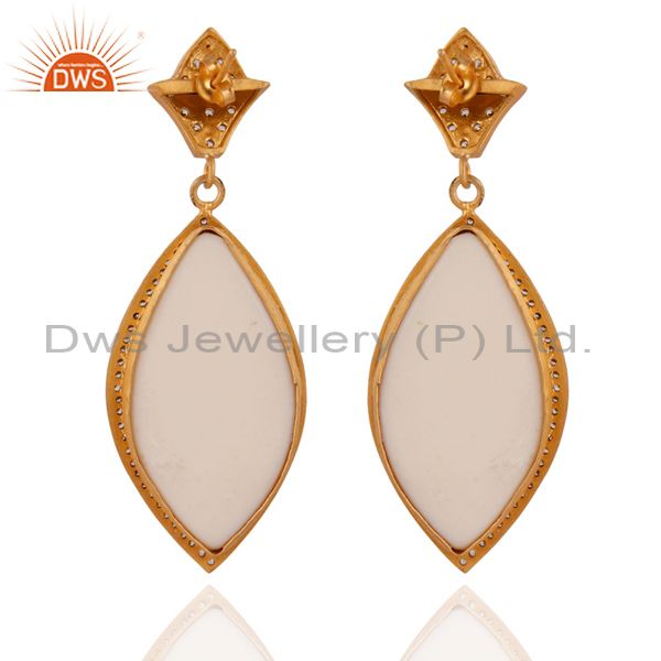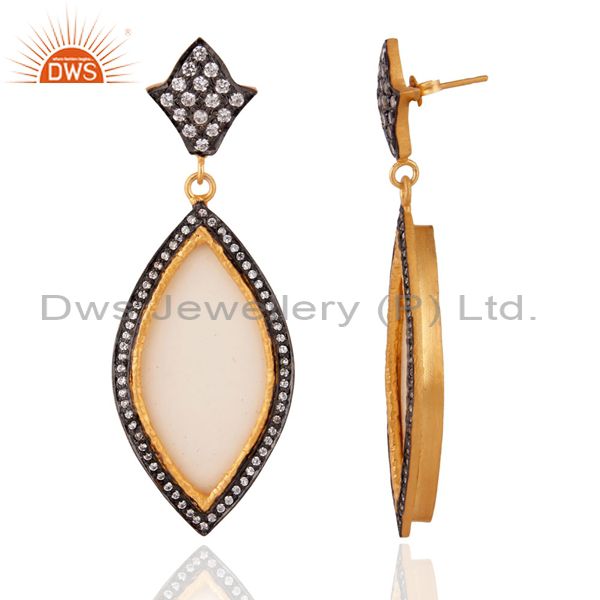 Marquise Shape White Bakelite & Cz Vintage Dangle Earrings With Gold Plated