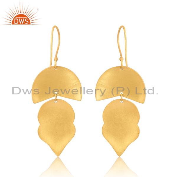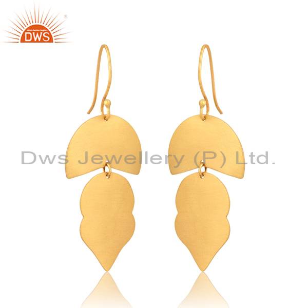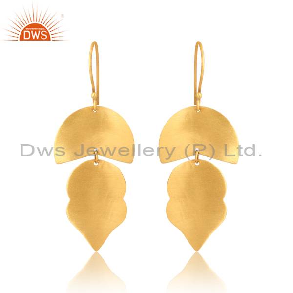 Modern Leaf And Semi Circle Earrings: Brass Beauty