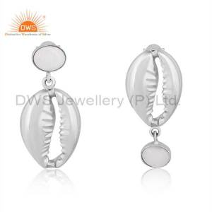 Mother of Pearl Gemstone Handmade Cowrie Sterling Silver Earrings