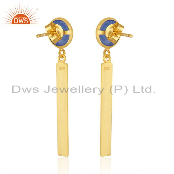 Natural Blue Chalcedony Gold Plated Silver Earrings Jewelry Wholesale