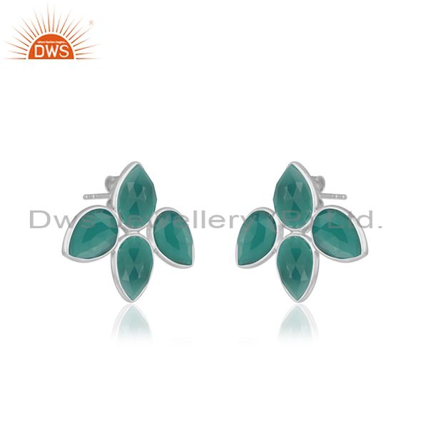 Natural Green Onyx Gemstone Designer Fine Silver Earrings Jewelry