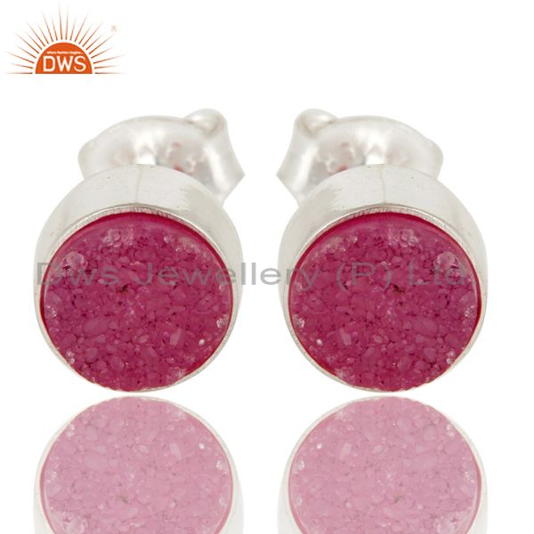 Natural Pink Druzy Agate Sterling Silver Womens Fashion Earrings