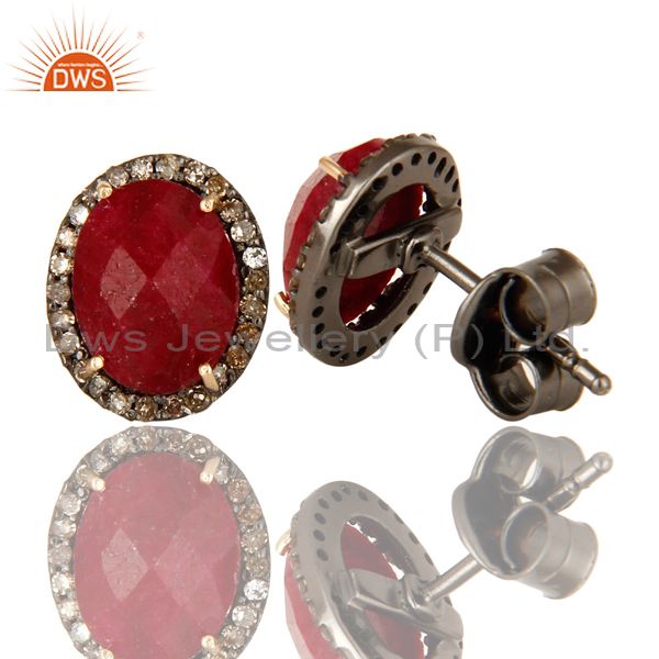 Natural Ruby 14K Yellow Gold And Sterling Silver Stud Earrings With Pave Diamond