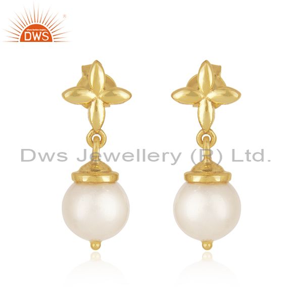 Natural South Sea Pearl Gemstone Gold Plated Sterling Silver Earrings