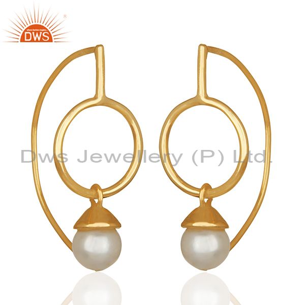 Natural White Pearl Gold Plated 925 Silver Drop Earrings Jewelry