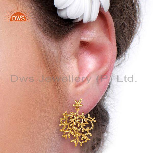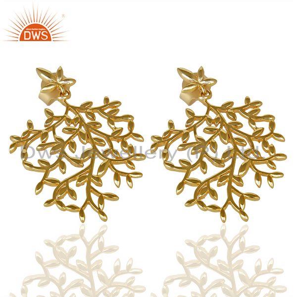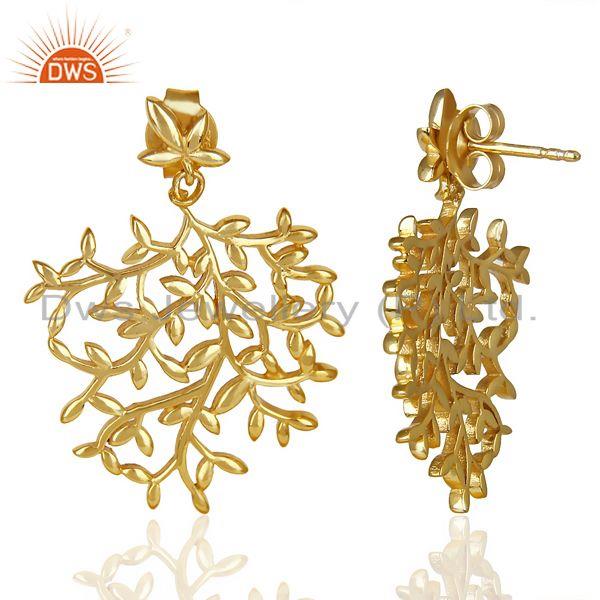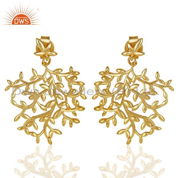 Olive Leaf Drop 14K Gold Plated 92.5 Sterling Silver Earring
