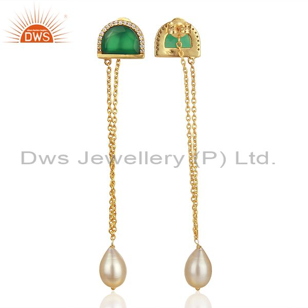 Onyx Gemstone With Cz Gold Plated 925 Silver Chain Earrings Wholesale