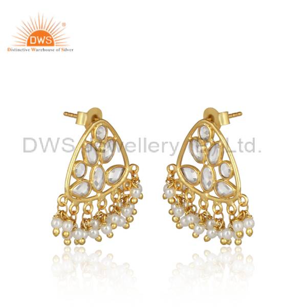 Pearl Beads And Cubic Zirconia Earrings: Gold Plated Silver