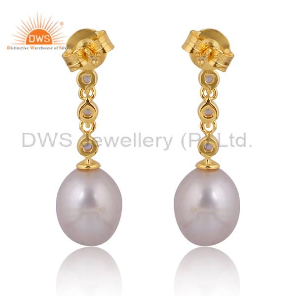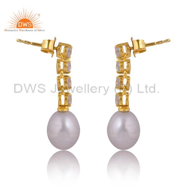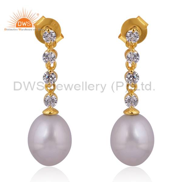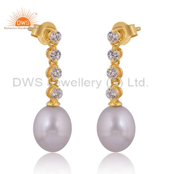 Pearl Cubic Zirconia Earrings Sterling Silver Gold Over Palladium