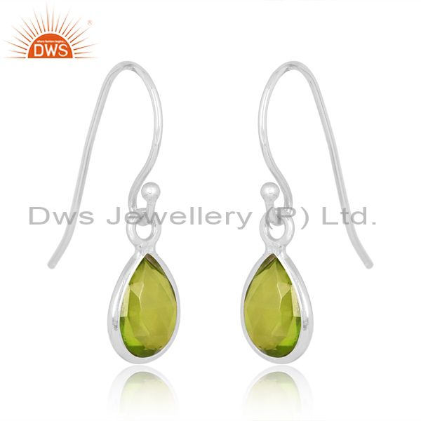 Peridot Quartz Briolette On White Sterling Silver Earring