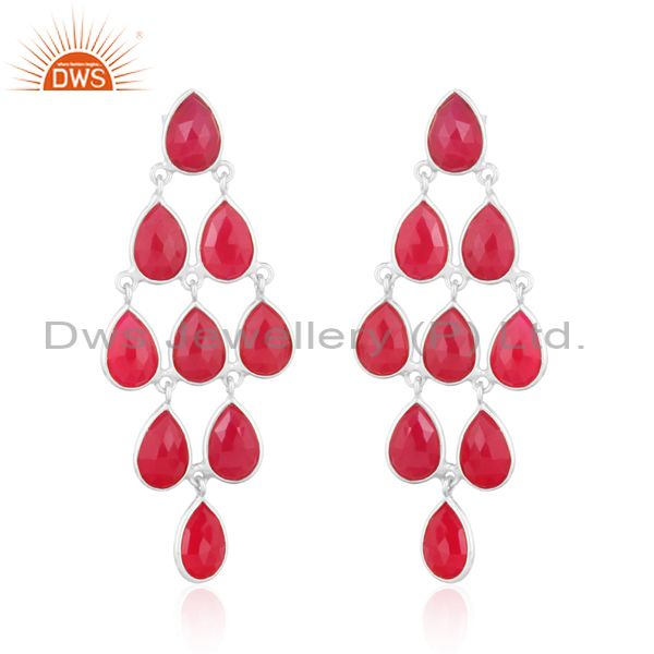 Pink Chalcedony Gemstone Designer Sterling Silver 925 Chandelier