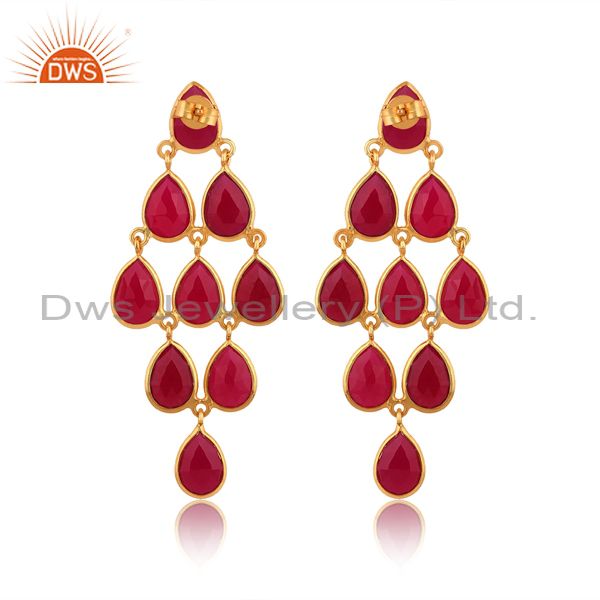 Pink Chalcedony Gemstone Designer Yellow Gold On Silver Chandelier