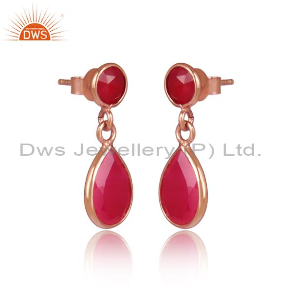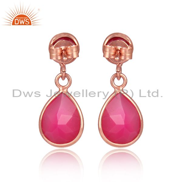 Pink Chalcedony Tear Drop Sterling Silver Rose Gold Earrings