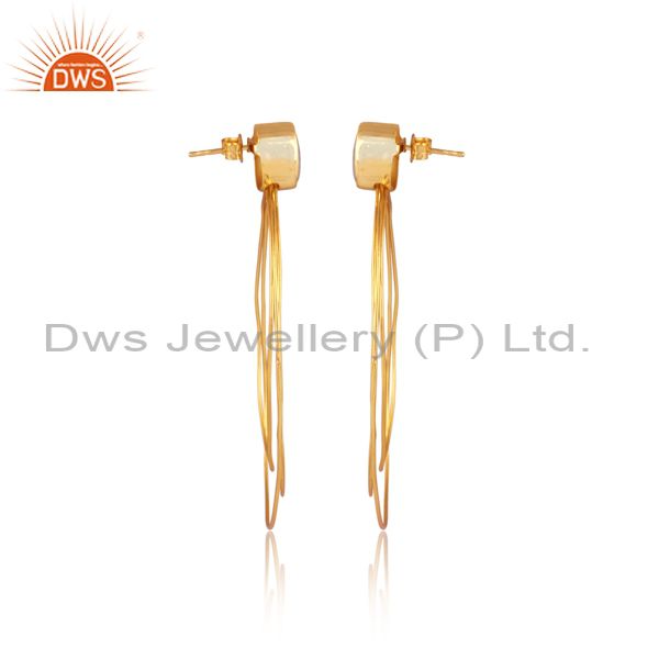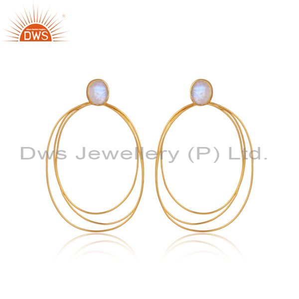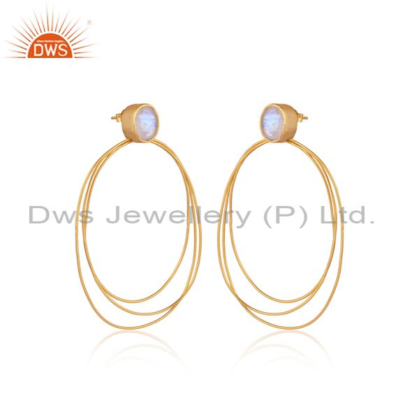 Rainbow Moon Stone Gold On Silver Oval Fine Wire Earrings