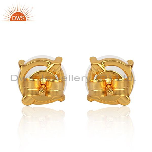 Rainbow Moon Stone Set Classic Gold On Silver Stud Earrings