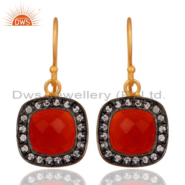 Red Onyx And Cubic Zirconia 18K Yellow Gold Plated Womens Fashion Earrings