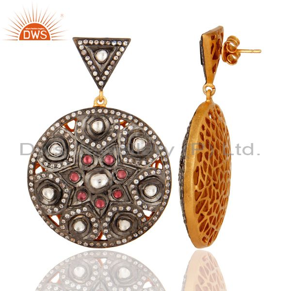 Rhodolite Garnet & Crystal Polki 925 Sterling Silver Handmade Victorian Earrings