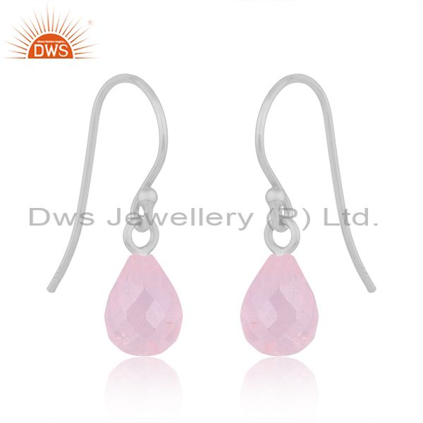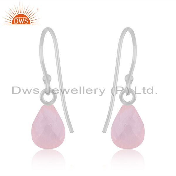 Rose Quartz Set Fine 925 Sterling Silver Earwire Earrings