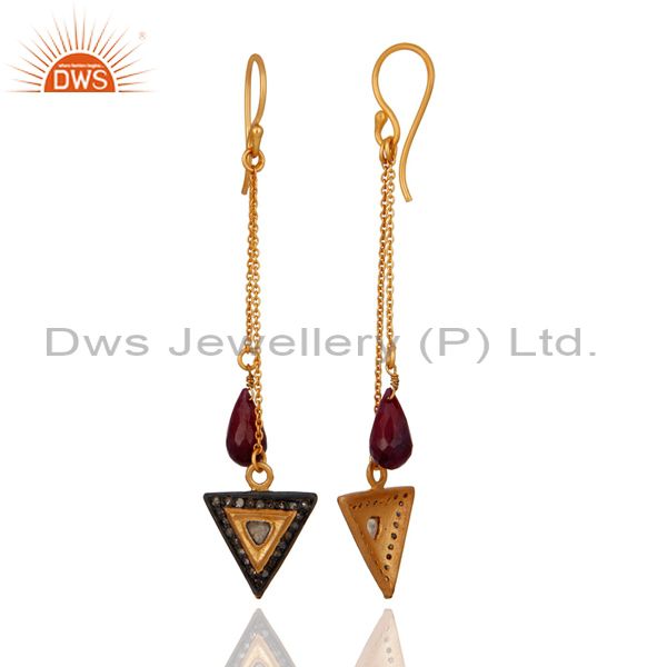 Rose/Antique Cut Diamond Ruby 925 Sterling Silver Victorian Look Dangle Earrings