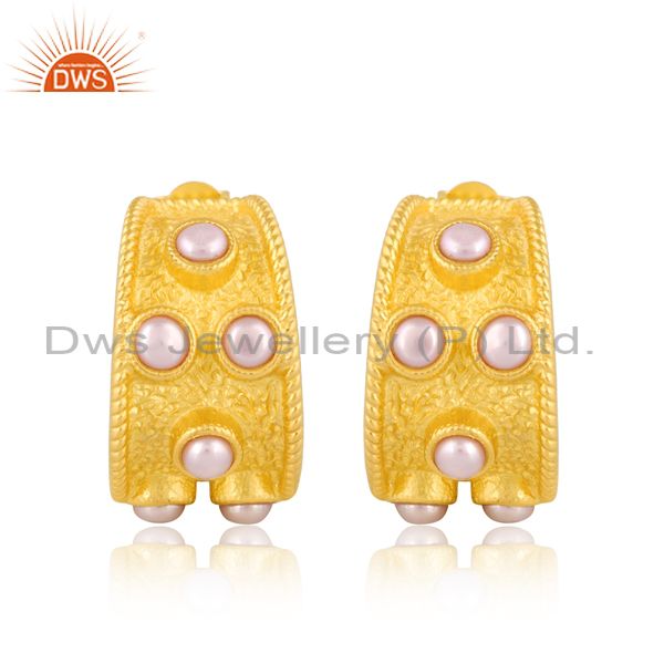 Round Pearl Set Gold On 925 Silver Huggies Style Earrings