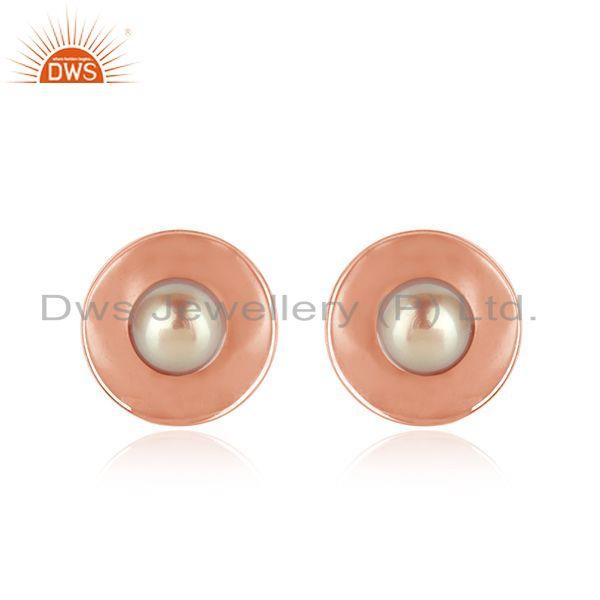 Round Shape Rose Gold Plated Gray Pearl Gemstone Stud Earrings Jewelry