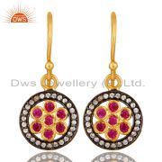 Shiny 18K Yellow Gold Plated Sterling Silver Red Cubic Zirconia Drop Earrings