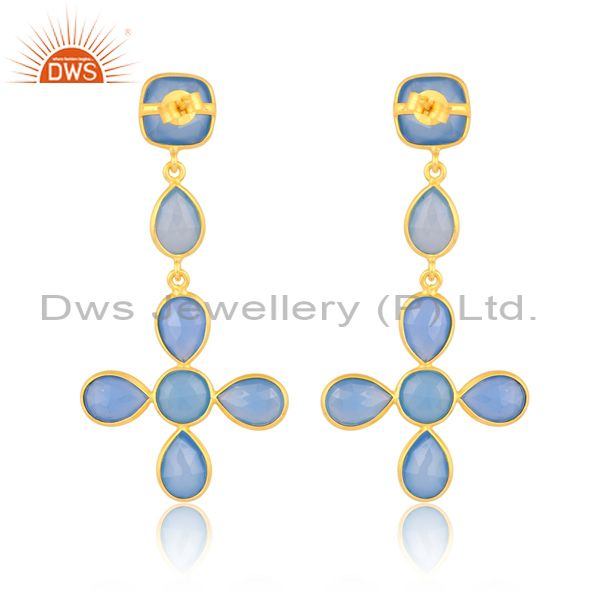 Silver Drops With Blue Chalcedony Pear Round Cabushion Cut