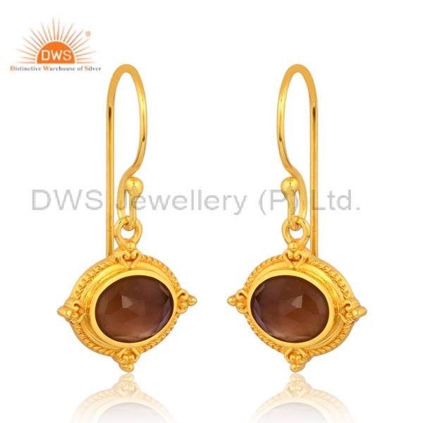 Smoky Nacre Doublet Glass Earrings In Brass Glow