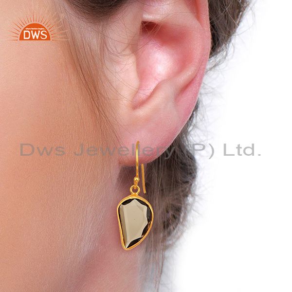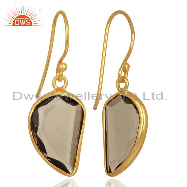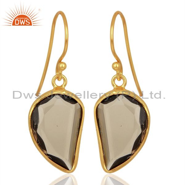 Smoky Topaz Handcrafted Artisan Abstract Gold Plated Drop Wholesale Earrings
