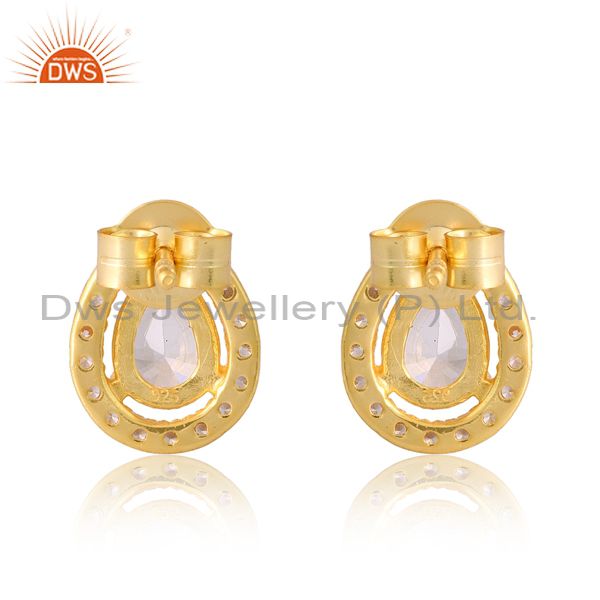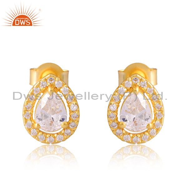 Sterling Silver Gold Earring With Cubic Zirconia Cut