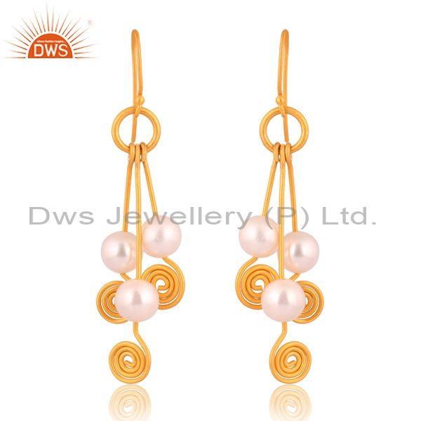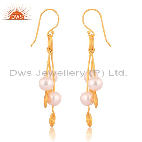 Sterling Silver Gold Earrings With Pearl Beads Round