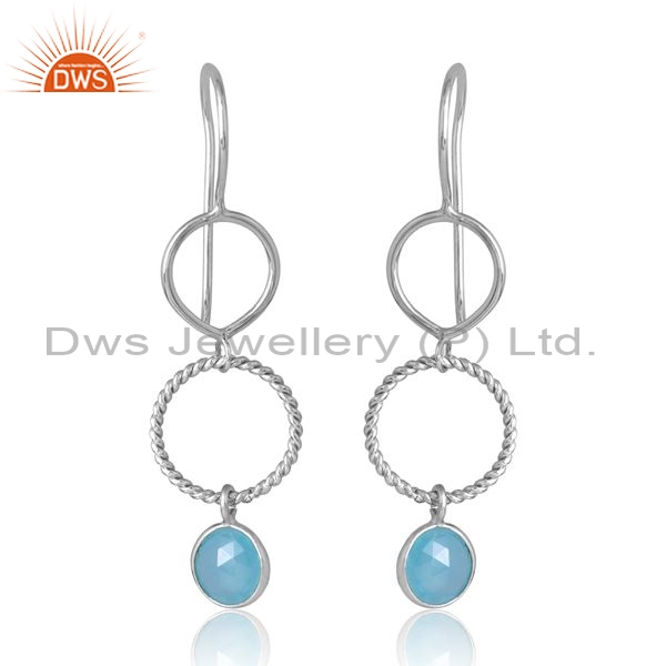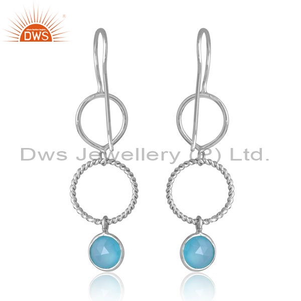 Sterling Silver White Earrings With Aqua Chalcedony Round