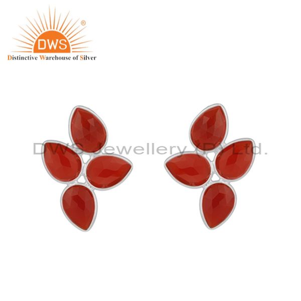 Stunning Red Onyx Silver Earrings For Girls - Chic Elegance