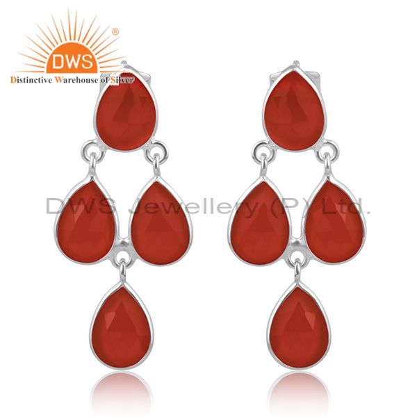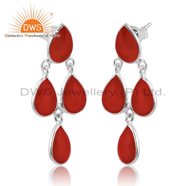 Stunning Red Onyx Silver Earrings For Stylish Women