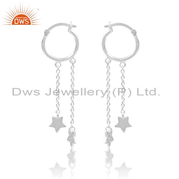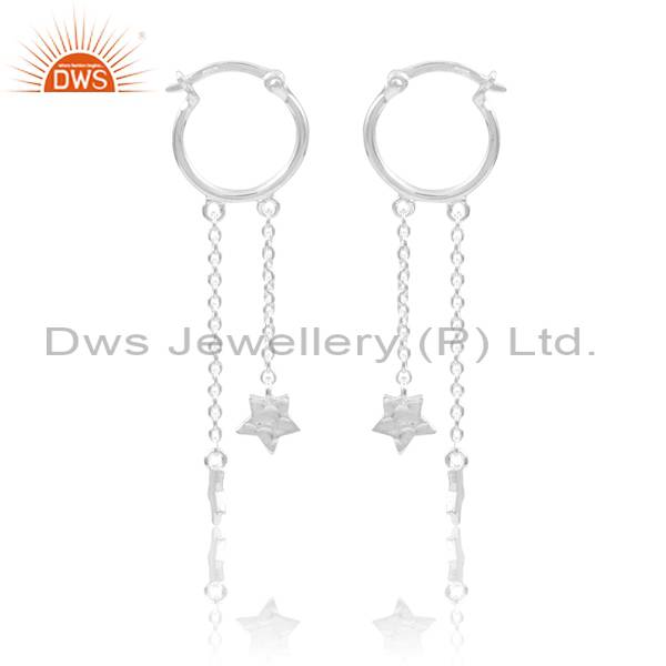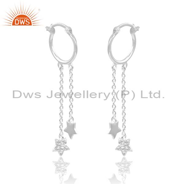 Stunning Silver Double Hanging Stars Drop Earrings For Her