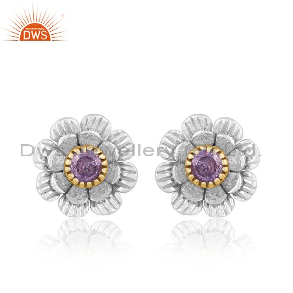 Tanzanite Set Gold On Fine Silver Classic Floral Earrings