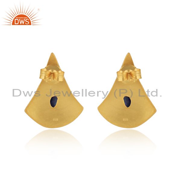 Textured Design Yellow Gold On Silver 925 Lapis Earrings