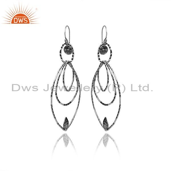 Textured Oxidized Silver Petal Hoop Custom Earwire Earrings
